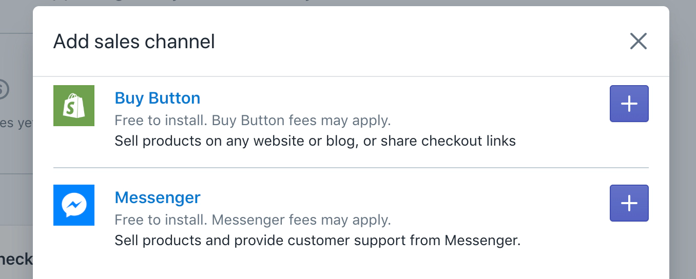 In order to create embeddable versions of your range of products, you’ll first need to add the Buy Button sales channel from the left hand navigation menu within your Shopify account. This feature is available to all Shopify plans: